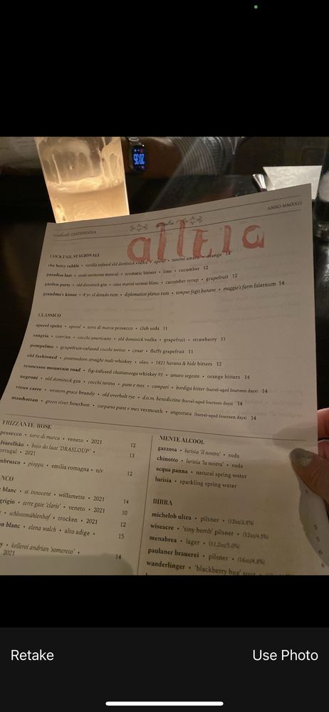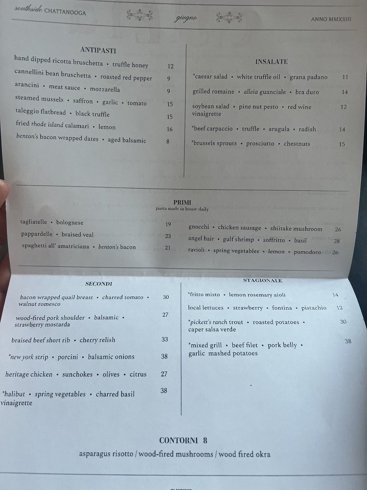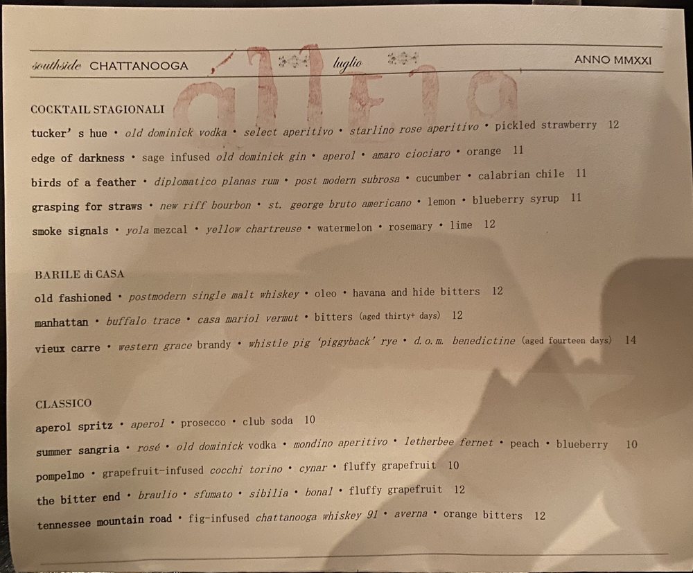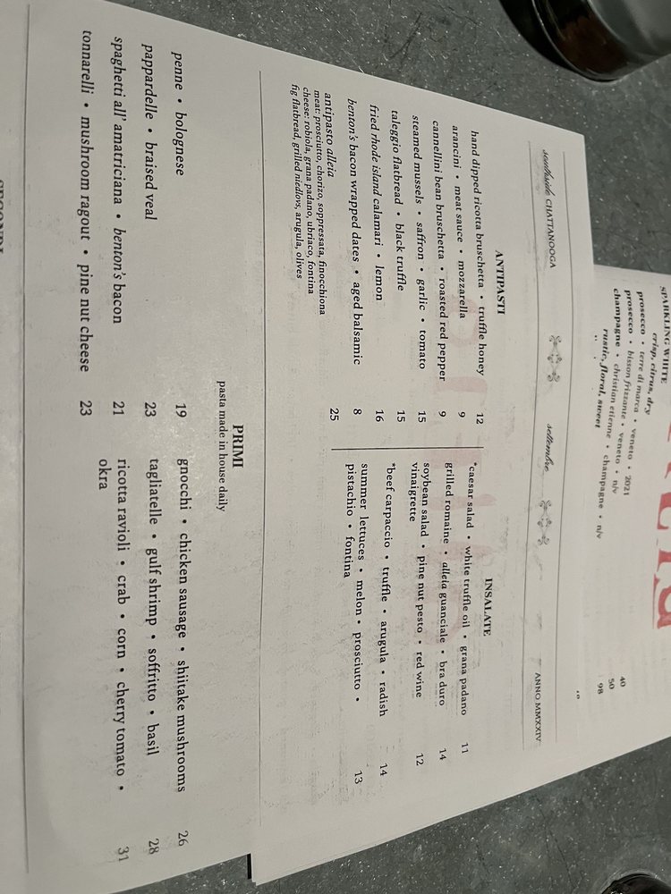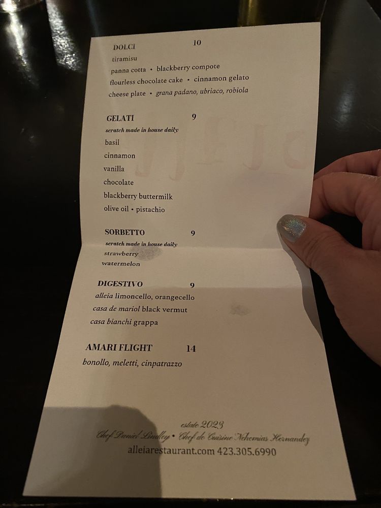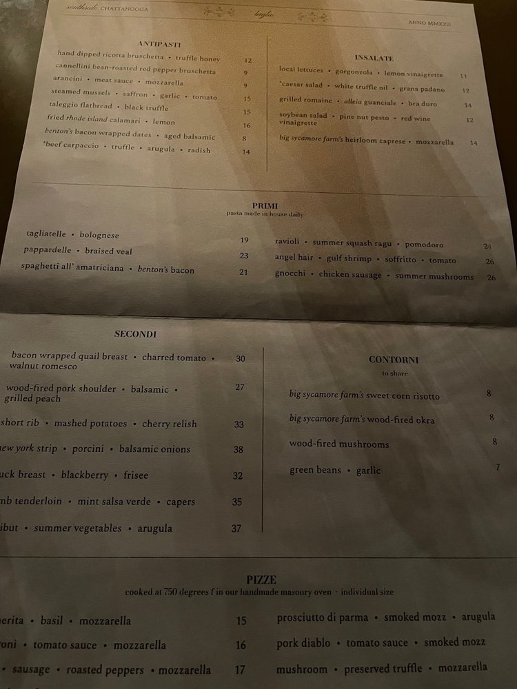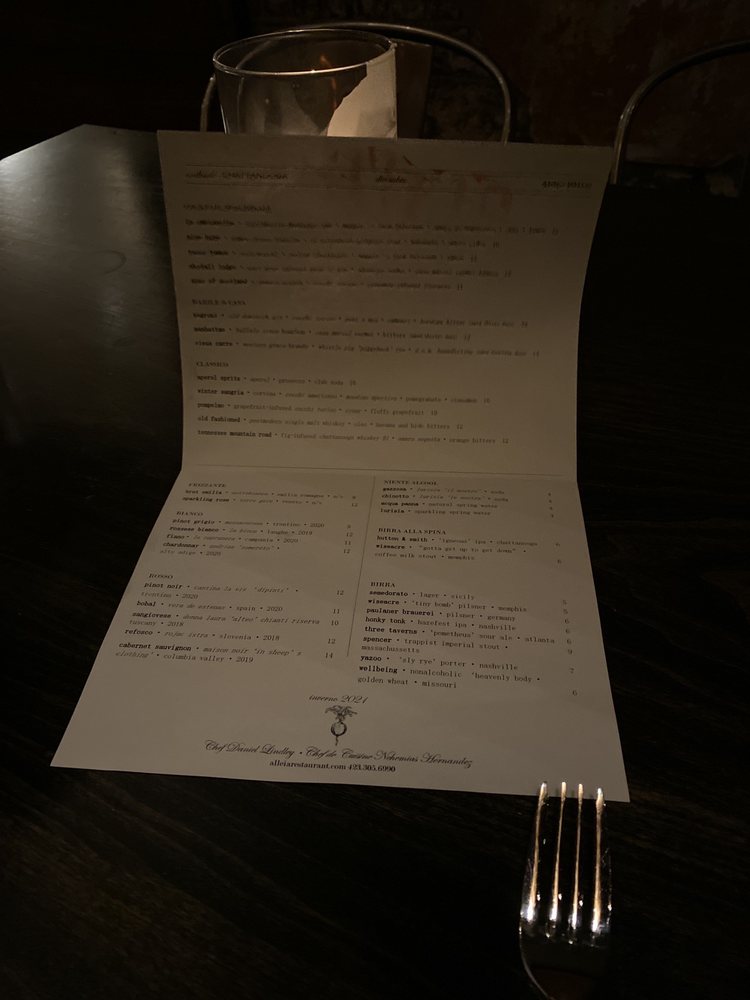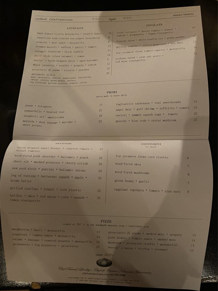 Introducing Alleia, an Italian restaurant located in Chattanooga, TN. Alleia offers a trendy, classy atmosphere perfect for special occasions. With a varied menu that includes vegan options and huge portions, Alleia has received rave reviews for its cuisine. Try their ricotta honey bruschetta, tonnarelli with mushroom ragout, and margherita pizza for a delightful experience. The restaurant provides outdoor seating, full bar service, and private dining options. Overall, Alleia excels in food quality, service, and ambiance, making it a must-visit spot in Chattanooga. Whether it's a date night or a family dinner, Alleia promises an unforgettable dining experience. Make a reservation for a memorable evening at Alleia.